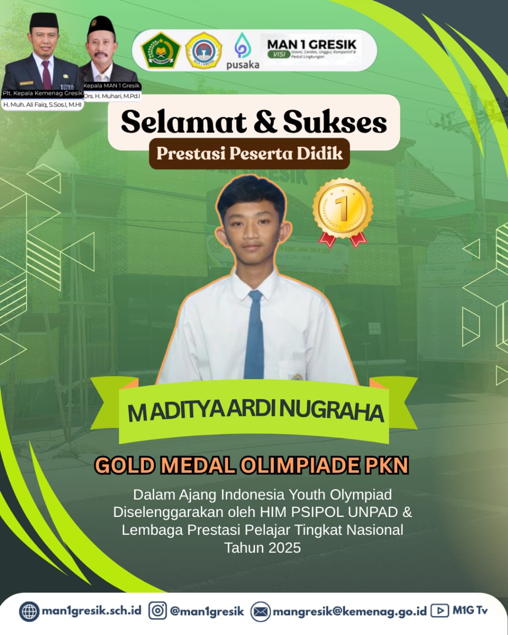 Prestasi gemilang ini menjadi bukti nyata bahwa siswa MAN 1 Gresik memiliki semangat juang dan kemampuan akademik yang luar biasa, khususnya dalam bidang Pendidikan Kewarganegaraan. Keberhasilan Aditya tidak hanya membawa kebanggaan bagi dirinya sendiri, tetapi juga bagi seluruh warga madrasah.