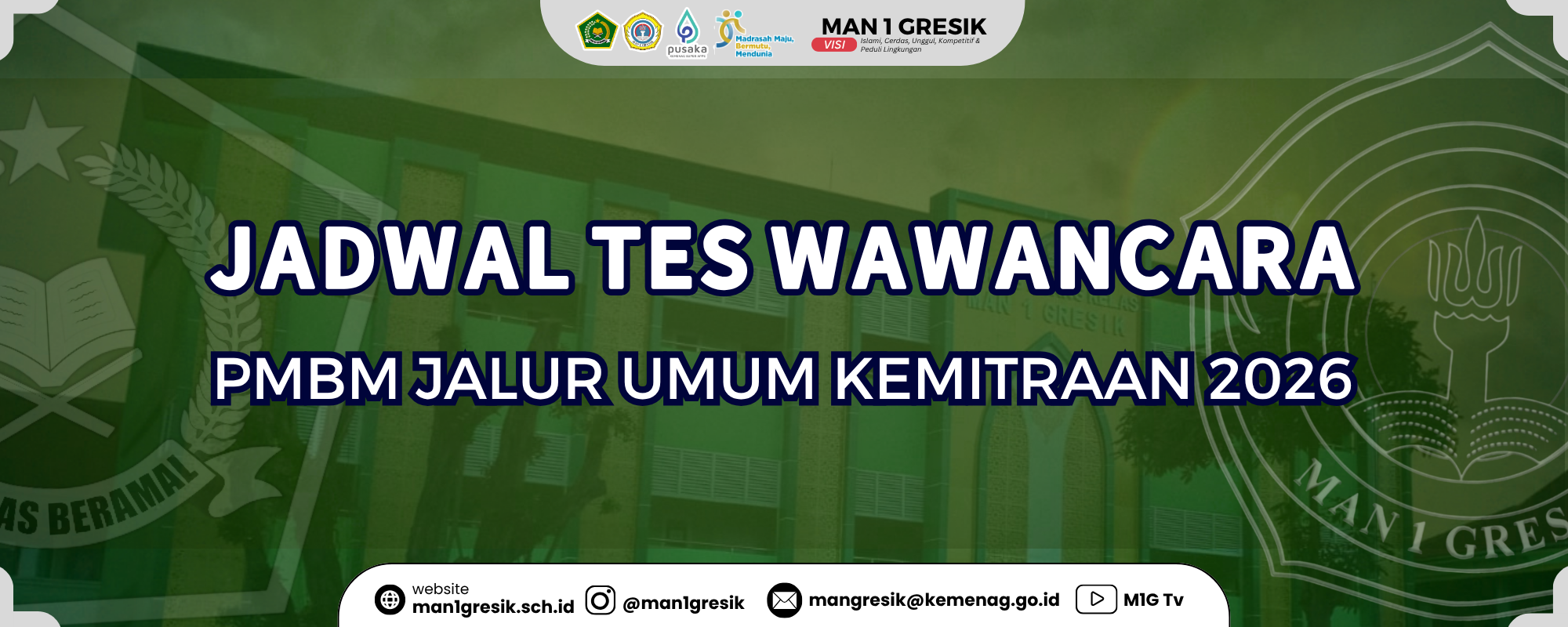 JADWAL PELAKSANAAN TES WAWANCARA JALUR UMUM KEMITRAAN PMBM MAN 1 GRESIK