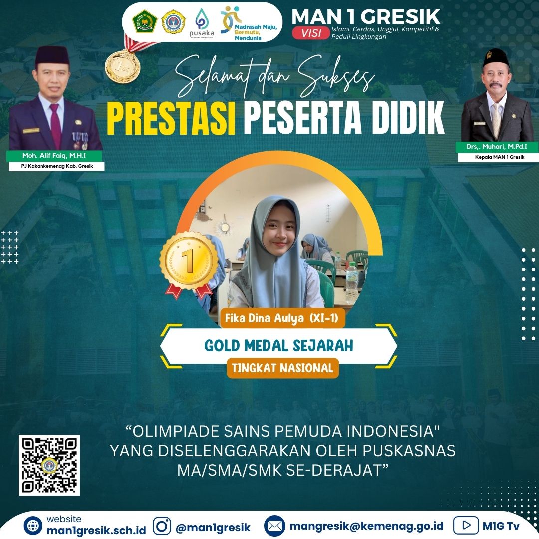 Read MoreMAN 1 Gresik kembali menorehkan prestasi gemilang melalui siswinya, Alfiyah Khoirin Nisa’ (X-1), yang berhasil meraih Gold Medal Olimpiade Sejarah pada ajang bergengsi FOSNAS (Festival Olimpiade Sains Nasional) Tahun 2025 Tingkat Nasional. Pencapaian ini menjadi bukti nyata atas dedikasi, ketekunan, dan semangat belajar yang tinggi dari Alfiyah dalam mendalami bidang sejarah. Prestasi tersebut tidak hanya…