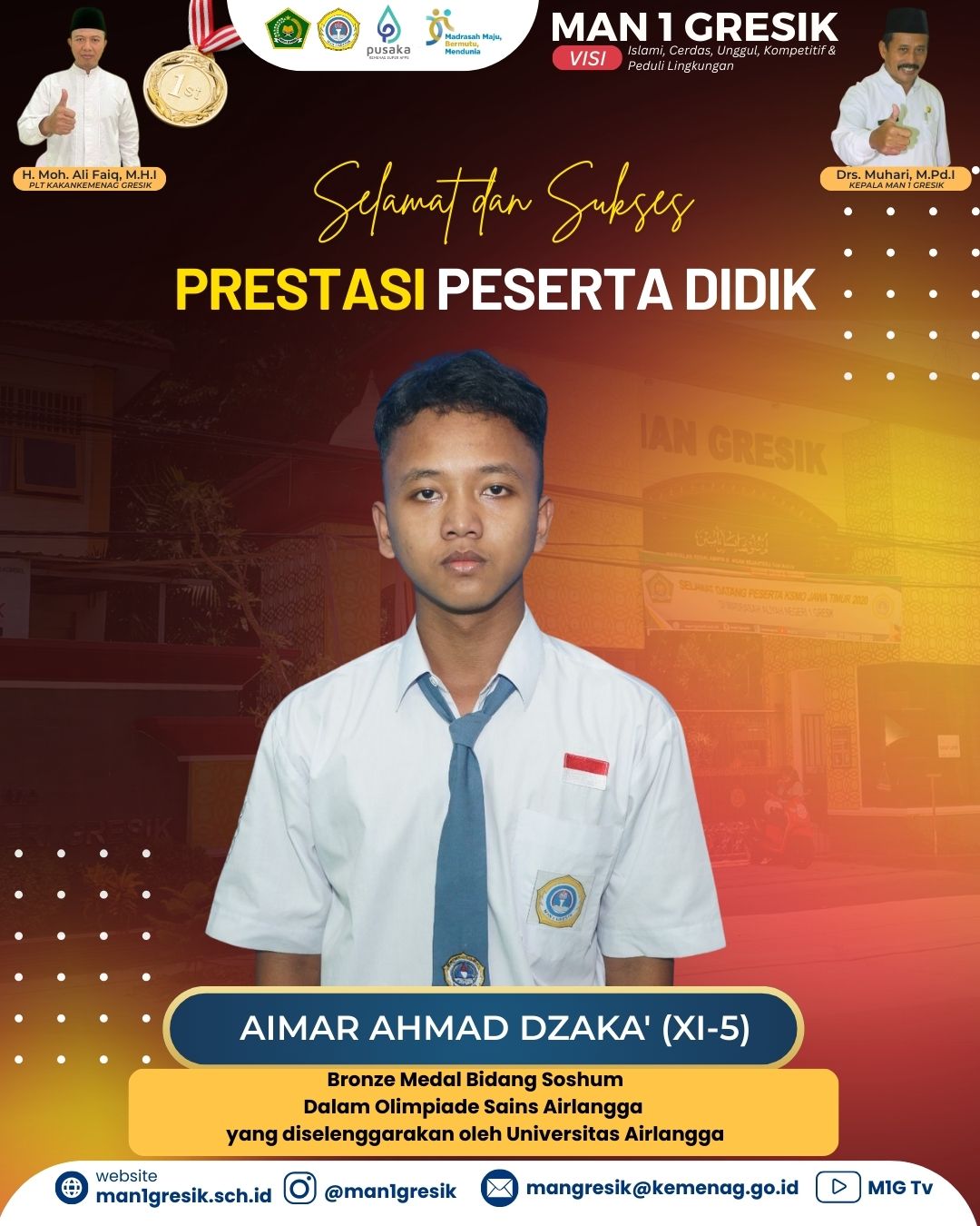 Read MoreMeski telah memasuki hari libur semester ganjil, semangat siswa MAN 1 Gresik dalam meraih prestasi tidak pernah padam. Prestasi membanggakan kali ini kembali dipersembahkan oleh siswa MAN 1 Gresik bernama Aimar Ahmad Dzaka’. Ia sukses menorehkan 1 bronze medal Olimpiade Soshum tingkat nasional. Olimpiade yang diikuti oleh ratusan peserta dari berbagai daerah di Indonesia tersebut…
